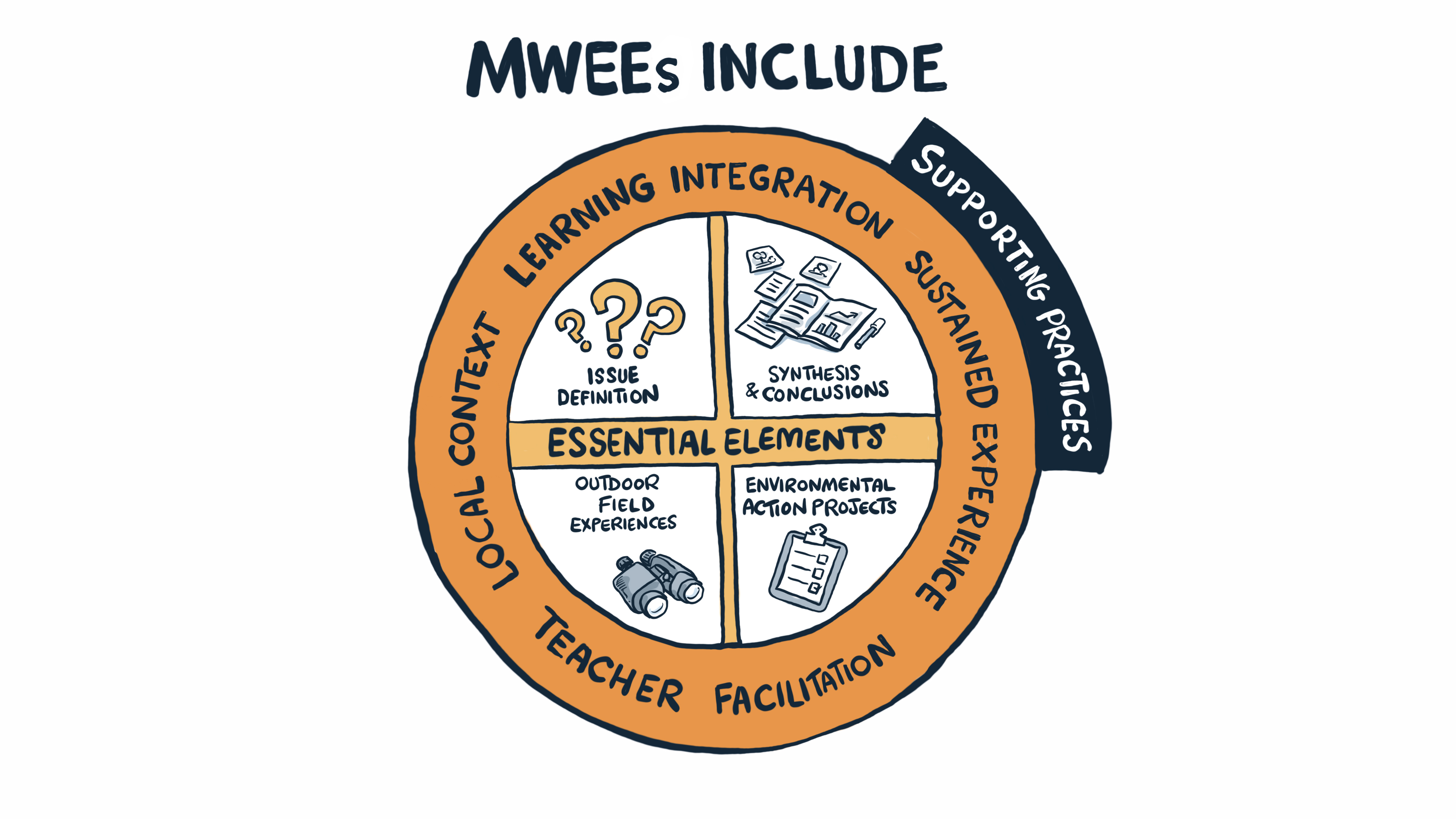 - MWEE 201: This course builds off the information from MWEE 101 and provides more in depth instruction on how to plan your own MWEE or refine an existing MWEE. Emphasis is placed on planning and conducting outdoor investigations, student-led action, and incorporating student voice. By the end of the course, participants will complete an Environmental Literacy Model (ELM) to describe their MWEE, connect it to standards and curriculum, and plan out the procedures used to guide student-directed investigations and action projects.